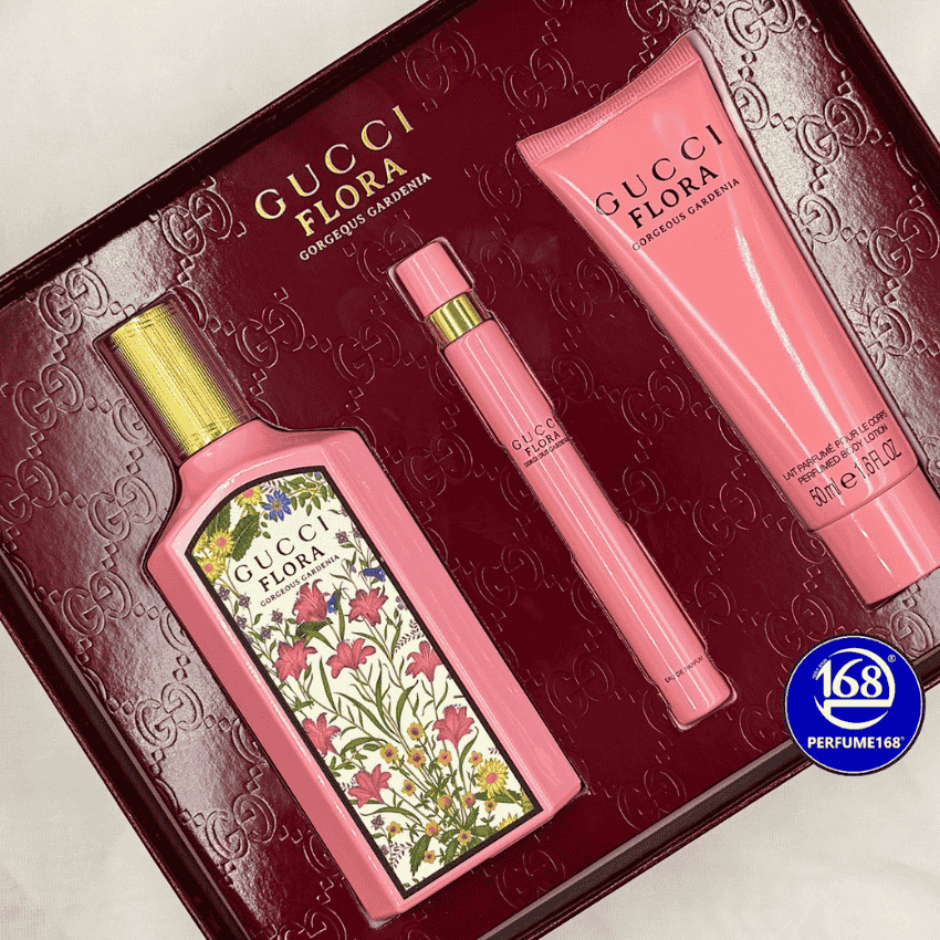 Gucci Flora Gorgeous Gardenia EDP (hồng) Giftset 3PC (100ml+10ml+Lotion) - Nước hoa chính hãng 100% nhập khẩu Pháp, Mỹ…Giá tốt tại Perfume168