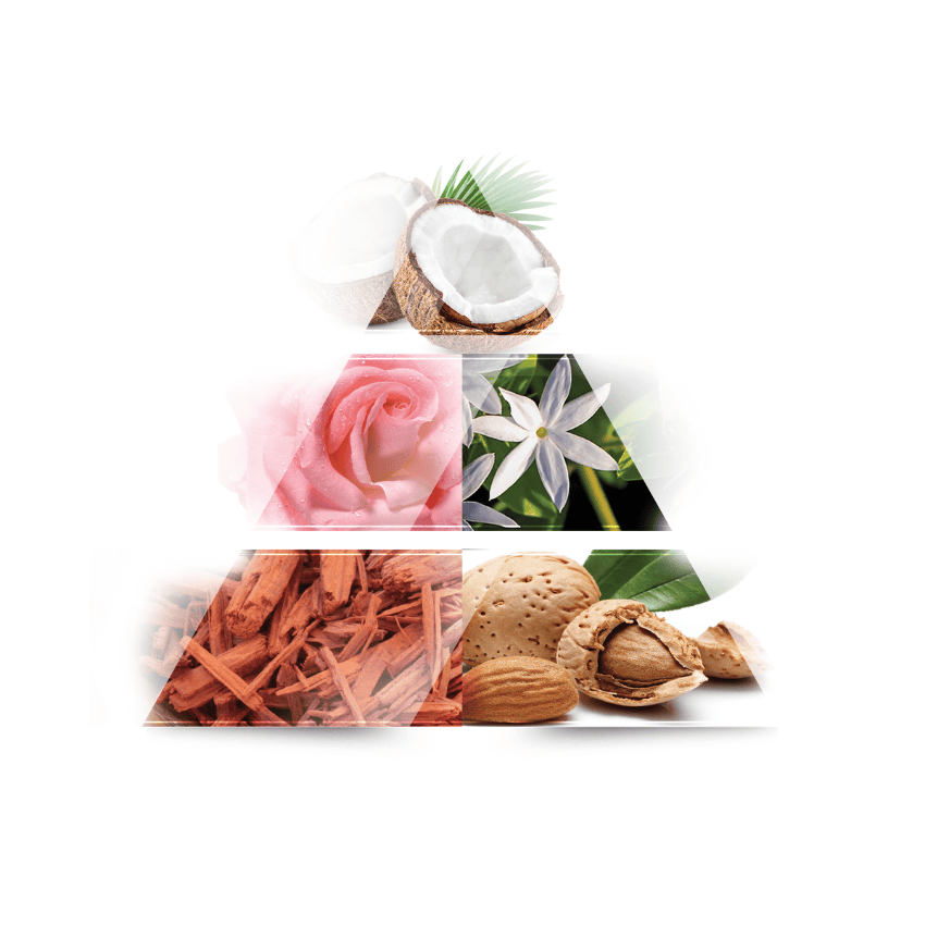 Hương giữa: Hoa nhài, Hoa hồng, Hoa huệ, Hoa linh lan, Gỗ hồng Brazil
