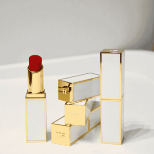 Chiếc thỏi son mang dấu ấn couture của Tom Ford ngay từ thiết kế. Vỏ kim loại mạ vàng sáng bóng, từng đường nét vuông vức thanh lịch, tạo cảm giác đẳng cấp ngay trong tay. Lớp son Ultra-Shine khi chạm lên môi mở ra một trải nghiệm ẩm mượt đầy quyến rũ. Độ bóng không gắt, mà như một màng ánh nhẹ, ôm lấy đường cong tự nhiên của môi và hun đúc nét mềm mại suốt cả ngày.